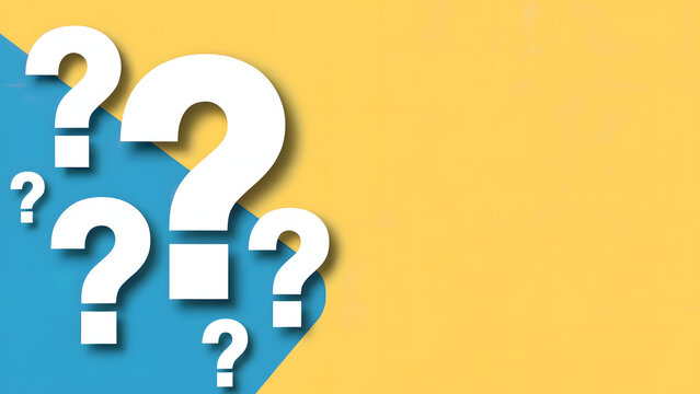 Multiple White Question Marks on a Yellow and Blue Background - Graphic Design