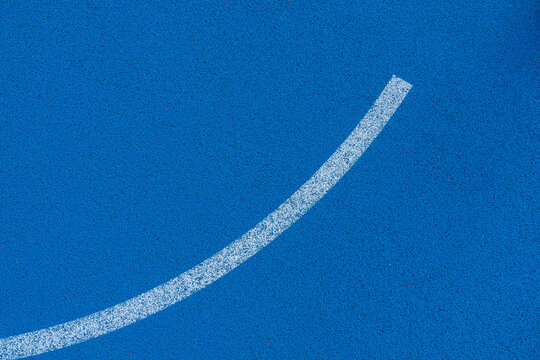 Colorful sports court background. Top view light blue field rubber ground with white line outdoors