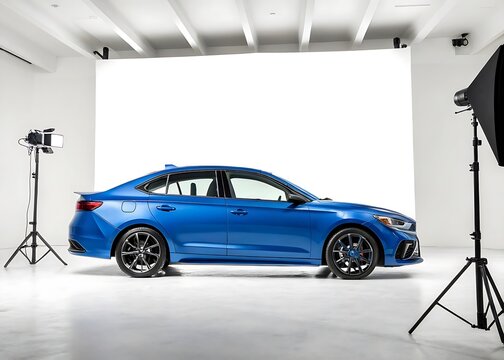 a blue sedan Centered composition with clean, even lighting isolated on white background