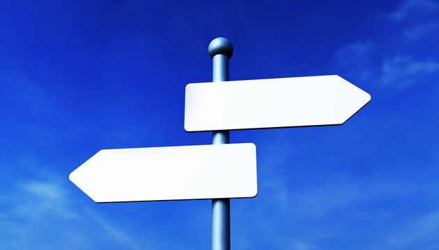 Blank direction blue signpost.