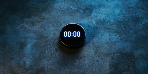 Blue digital timer on black display