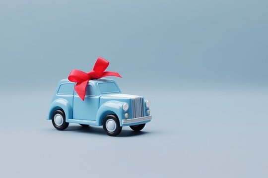 Blue retro toy delivering car with copy space, Valentine's day, Mother's day, Women's Day and love concept