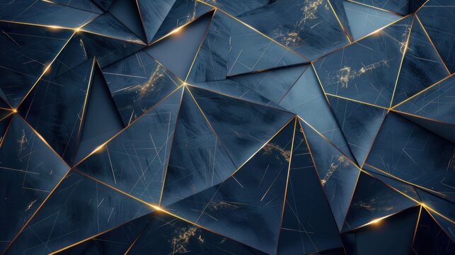 Abstract Blue Triangle Pattern with Golden Lines and Marble Texture