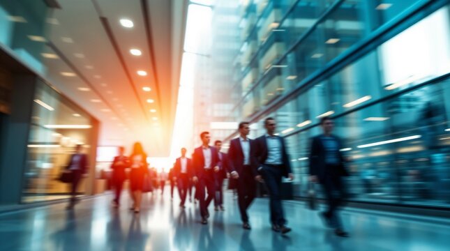 motion blur image of business people crowd walking at corporate office in city downtown