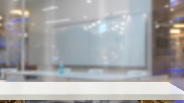 blurred background of a modern office interior with panoramic windows and beautiful lighting, Blurred office meeting room