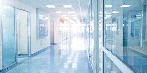 white blue blurred hospital interior , copy space concept for wallpaper or background