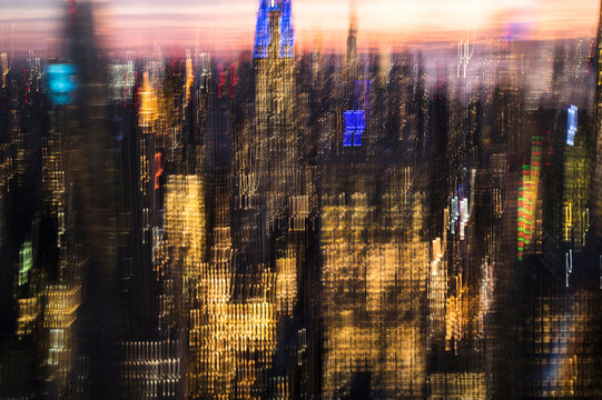 Rainy window blurred city lights background