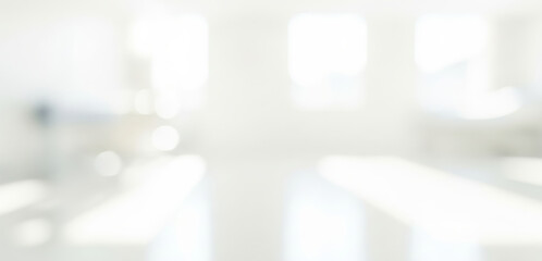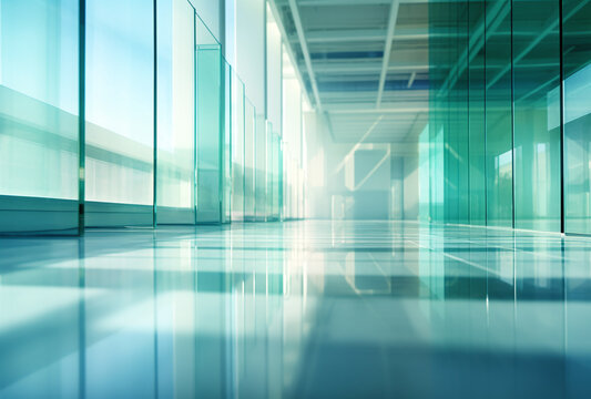A light blurred background. The lobby of an office or medical facility with panoramic windows and a place for text.
