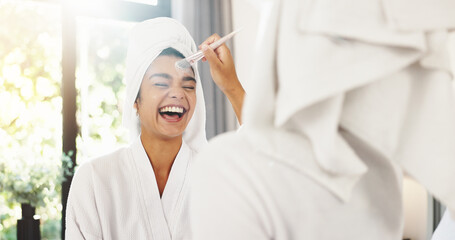 Filming diverse female friends applying makeup at bedroom counter, with brushes and palettes