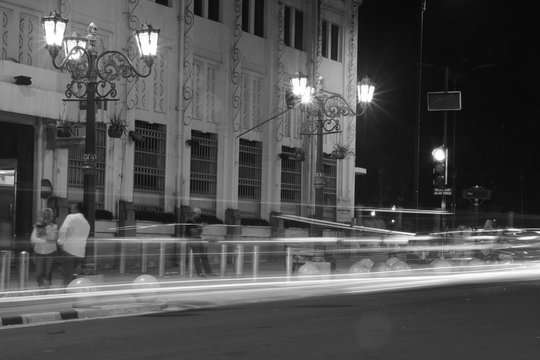 Yogyakarta, Indonesia on 23 October 2022. Malioboro. White Colonial Bank Building Red Roof BNI Sign Daytime Exterior