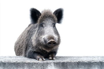 a boar sitting on a concrete ledge looking at the camera