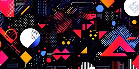 A dynamic geometric pattern featuring bold shapes and high-contrast colors, perfect for tech or innovation-related themes.
