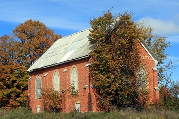 Exterior of an abandoned old historic palace mansion in Poland in Central Europe