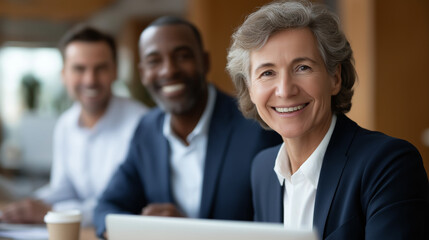 Business women and men join forces in the boardroom to drive success at our marketing agency