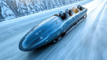Speeding through icy curves in a thrilling bobsled race on a winter day