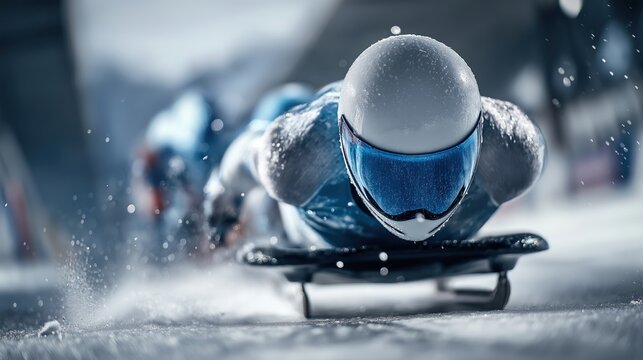 A bobsled team speeding down an icy track, their helmets glinting in the winter sun