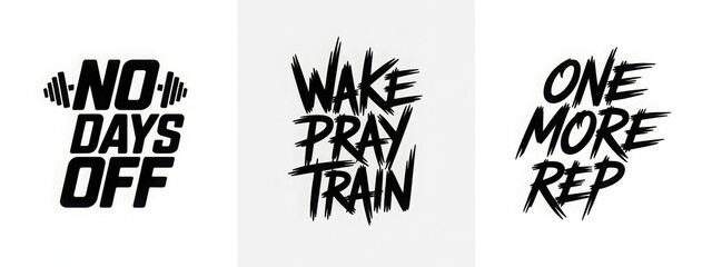 Gym motivation. Set of gym workout motivation graphics, logos, labels and badges. Typography lettering.