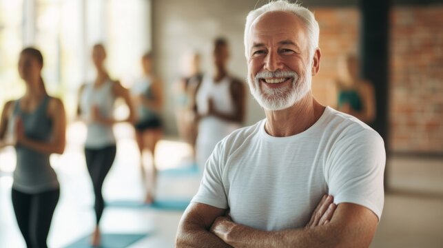 Smiling Senior in Yoga Class