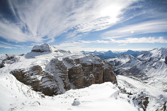 Dolomite moutnain peaks View to Piz Boe, Sella, Italy