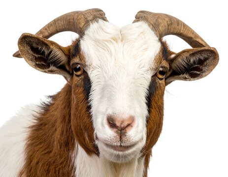 Boer Goat Head Portrait, isolated on transparent background