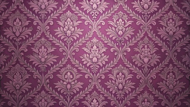 Intricate Floral Damask Pattern in Deep Purple, Wallpaper, Decorative, Classic, Design