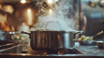 Boiling pot overflow on stove showing cooking disaster and safety issue