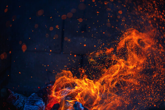 abstract fire in fireplace with sparks