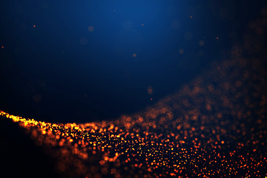 Golden fire particles trail wave blur on dark blue gradient background