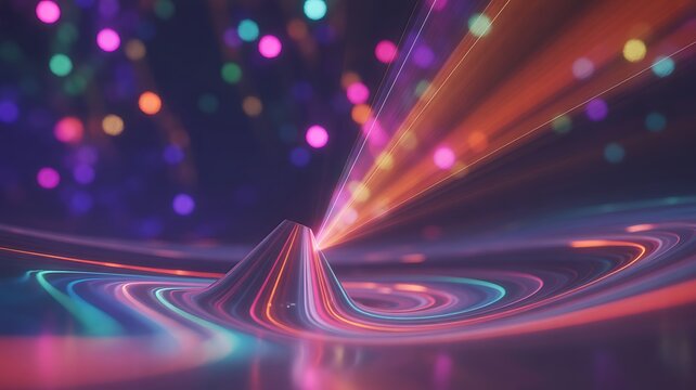 Dynamic vibrant light trails and sparkling bokeh for tech presentations or modern backgrounds, colorful energy waves for creative projects