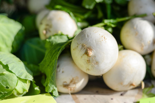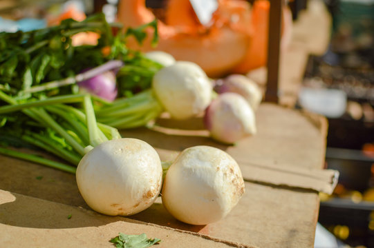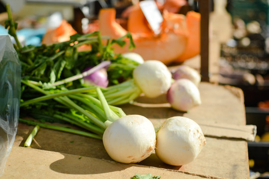 Turnips on display at the farmers market