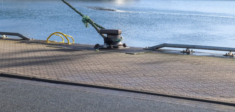 Different bollards and technical installations of vessel traffic at the Kiel port