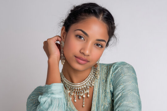 Young beautiful indian woman wearing traditional kundan jwelery