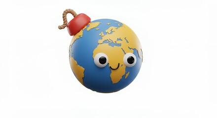 Cartoon bomb character with a burning fuse looking scared, representing danger and impending explosion