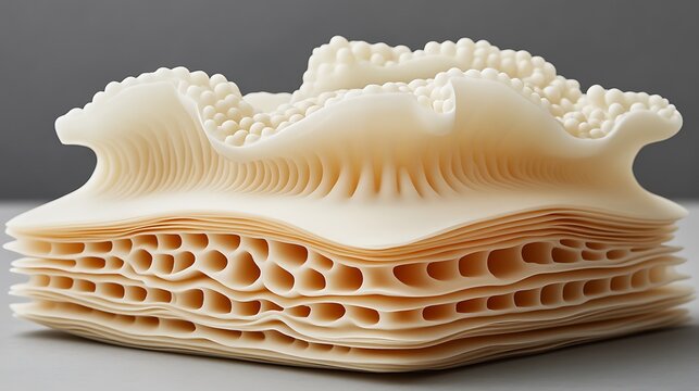 Abstract form with layered structures reminiscent of coral or bone formations display