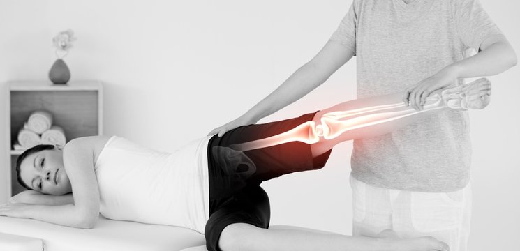 A clear and detailed illustration showcasing the anatomy of a healthy knee joint with a user's hand highlighting key areas.
