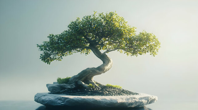 Bonsai Tree on a Rock - 3D Illustration