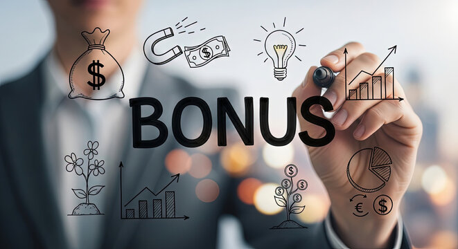concept of bonus, communication by pulling paper of bonus from the envelope.