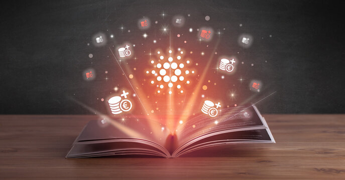 Innovative idea illuminating investment strategy book with financial growth graphs for success