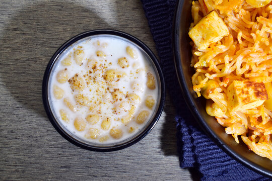 Indian style summer drink masala chach or raita made from buttermilk