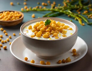 Boondi raita is a Indian raita made with spiced yogurt and boondi (crisp fried gram flour balls), Indian traditional food