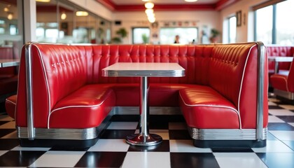Retro diner booth seating with teal and white design, ready for customers to enjoy classic American cuisine