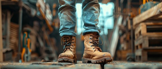 Worn leather hiking boot stepping on moss trail closeup outdoor footwear texture