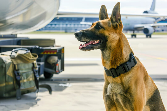 Police dog on duty at airport security checkpoint