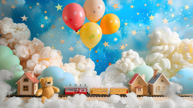 Kids toys background with teddy bear and colorful blocks : Generative AI