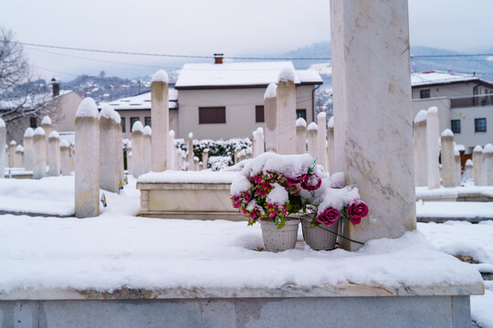 Martyrs' Memorial Cemetery during winter in Sarajevo, Bosnia Herzegovina