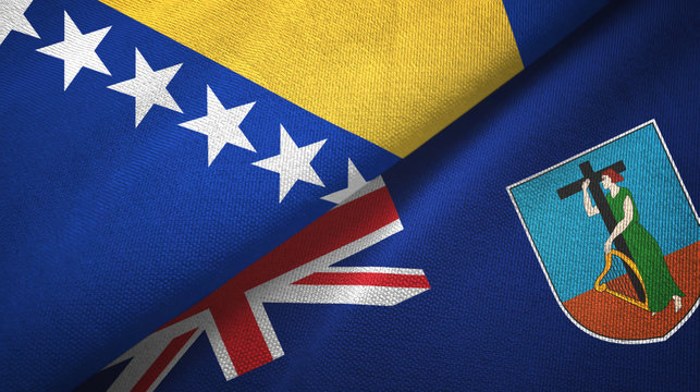 Bosnia and Herzegovina and Montserrat two flags textile cloth, fabric texture