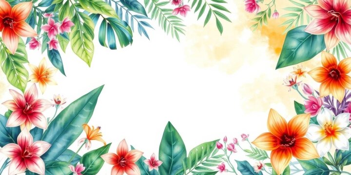 Pale leaves   botanical design banner Floral pastel watercolor border frame