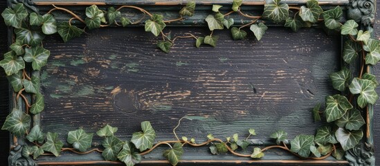 Gorgeous Vintage Wooden Frame Adorned with Green Ivy Leaves - A Vintage Green Ivy Leaves Theme on a Antique-inspired Wooden Frame