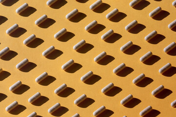 Pills spilling from brown bottle on wooden surface beside cozy knit blanket