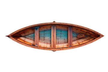 Wooden rowing boat top view isolated on white background